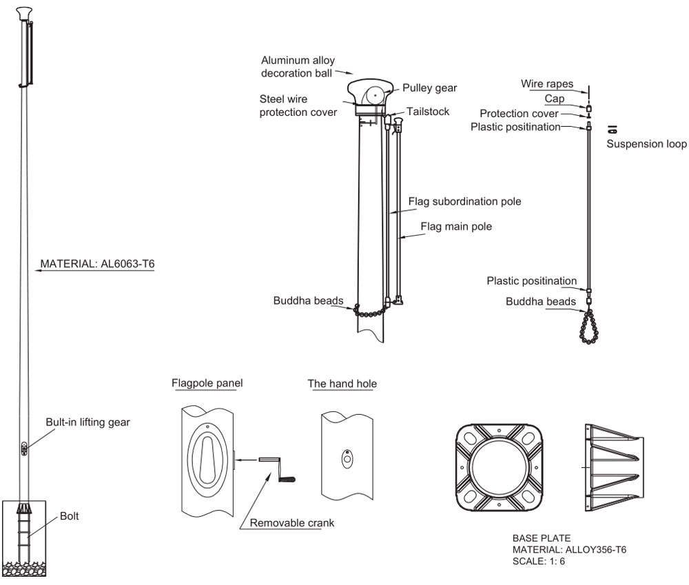 | لا. | الارتفاع (م) | الأنبوب السفلي (مم) | الأنبوب العلوي (مم) | الأنبوب الداخلي (مم) | القطر العلوي (مم) | قطر القاع (مم) | لوحة القاعدة (مم) | لوحة مدمجة (مم) | حجم البرغي (مم) | قطر فتحة التركيب (مم) | ||