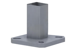 شفة قاعدة من صفائح فولاذية بأربعة مسامير مصنوعة من الفولاذ الكربوني المطابق لمعيار ASTM A36 مع قوة خضوع لا تقل عن 36000 رطل/بوصة مربعة، مع غطاء قاعدة مكون من قطعتين وأدوات تثبيت.